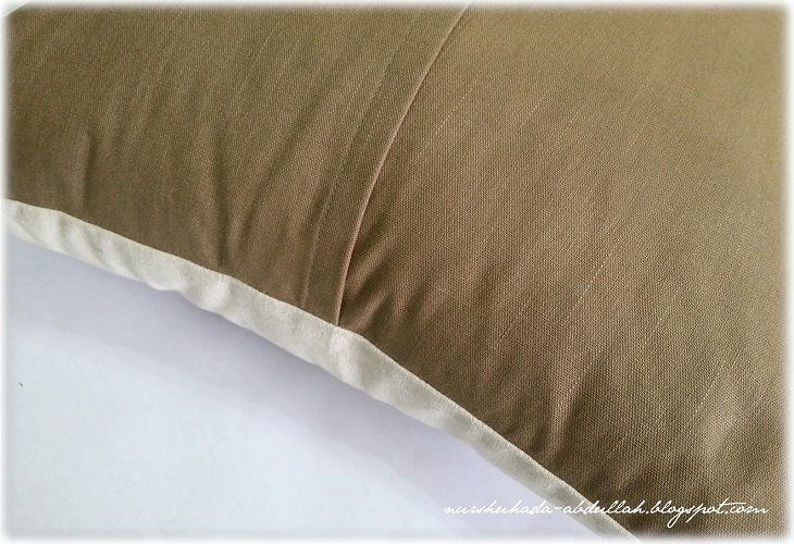 Ini adalah projek menjahit sarung bantal dari kain panel (linen). Sangat mudah rupanya menjahit sarung bantal ini. Jika fokus menjahit, tidak sampai satu jam pun sudah boleh siap. Sarung bantal ini bersaiz 16 inci x 16 inci dan muat-muat disarungkan pada bantal hiasan yang saya beli di Tesco. Untuk kain bahagian belakang, saya menggunakan kain linen berwarna coklat. Sarung bantal ini tidak mempunyai butang ataupun zip, hanya sarung saja. Bantal ini akan menjadi teman saya di bilik menjahit. Sengaja saya memilih kain panel dengan gambar mesin jahit. Sesuai sangatlah.