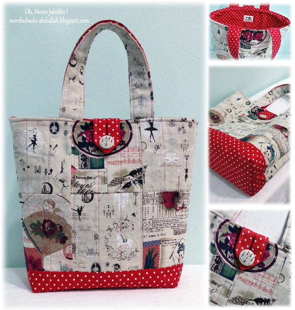 Kali ini, entri dipenuhi dengan gambar-gambar beg. Kebanyakannya adalah hasil projek jahitan saya dari tahun-tahun lepas. Tahun ini, aktiviti menjahit agak berkurang sedikit disebabkan oleh kekangan masa. Namun, beg-beg inilah yang membuat saya ‘jatuh cinta’ dengan dunia jahitan. Semua bermula ketika saya cuba belajar menjahit beg sendiri.