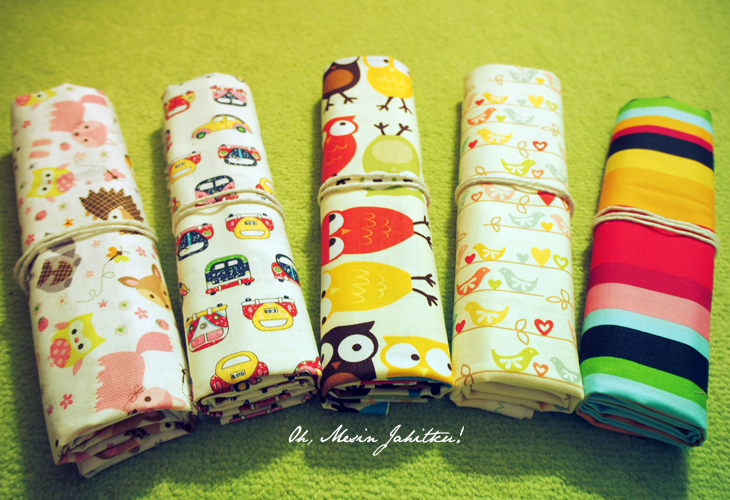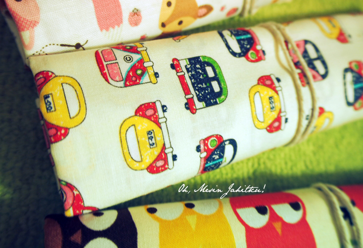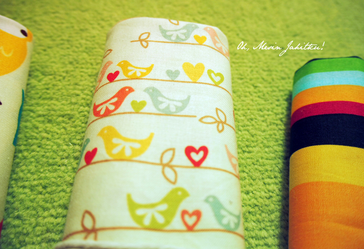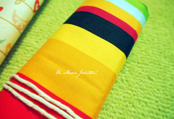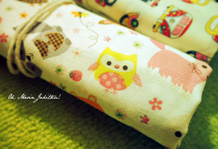 Kain-kain yang ditempah telah sampai, jadi kini saya boleh memulakan aktiviti menjahit beg jerut (drawstring bag) saya.
