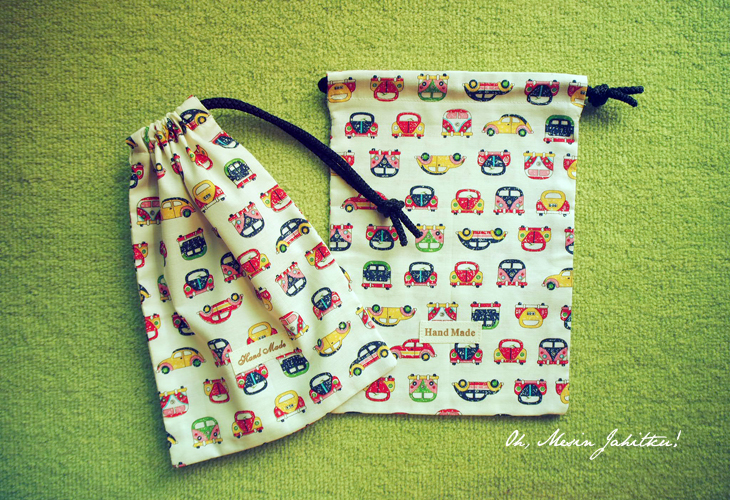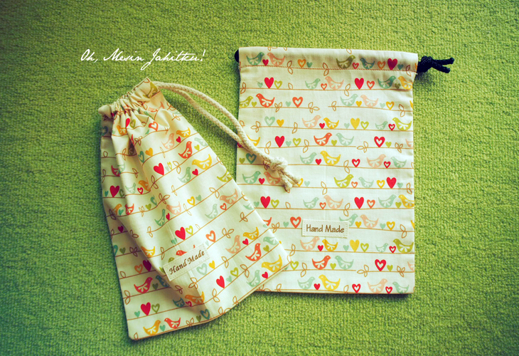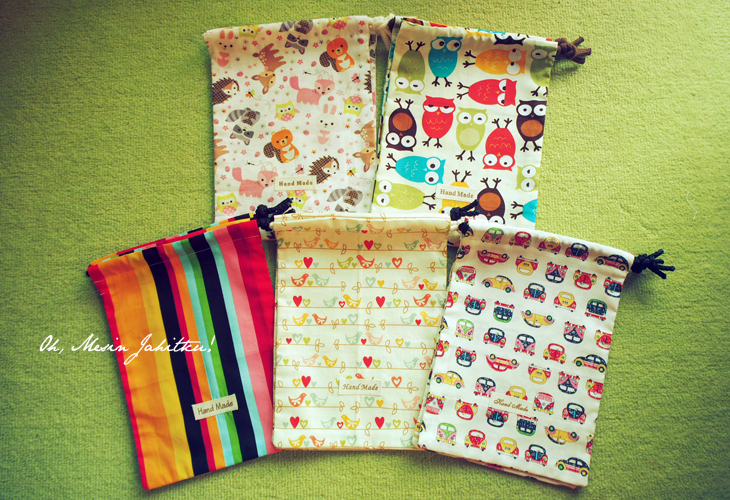 Inilah kain-kain cotton dalam entri sebelum ini, kini telah menjadi beg jerut – sebagai hadiah tajaan untuk adik-adik yang akan mengikuti bengkel Blogger Cilik Malaysia pada musim cuti sekolah ini.