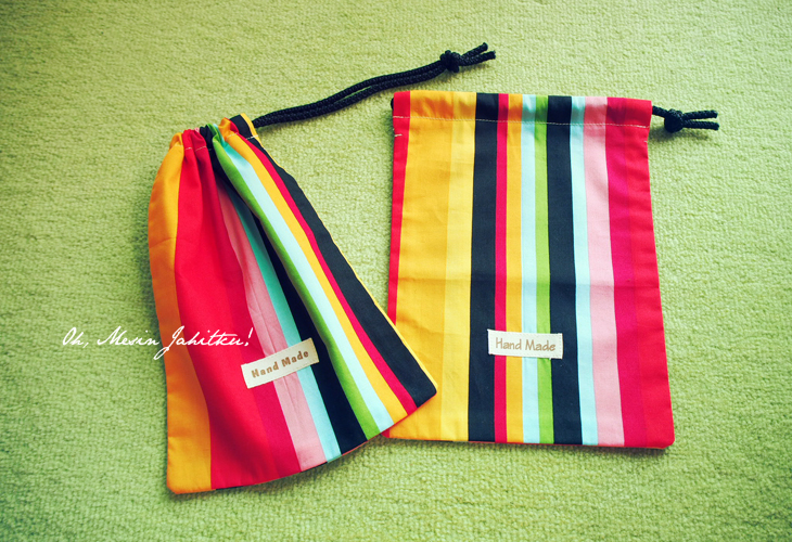 Hai, semua! Seperti yang dirancang, akhirnya siap juga. Walaupun sibuk dengan urusan kerja, saya sempat mencuri masa untuk menjahit beg jerut (drawstring bag) ini. Alhamdulillah.