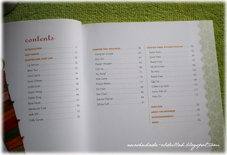 Hari ini, saya ingin kongsikan sebuah buku yang baru saya beli. Pretty Little Cozies adalah sebuah buku jahitan dan kraf terbitan Larkcrafts.com. Saya membelinya di MPH Bookstore secara kebetulan semasa sedang mencari buku di sana.Projek-projek jahitannya ringkas dan mudah untuk dihasilkan, sesuai bagi mereka yang baru memulakan aktiviti menjahit.